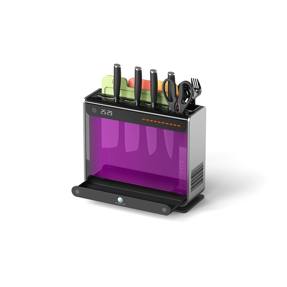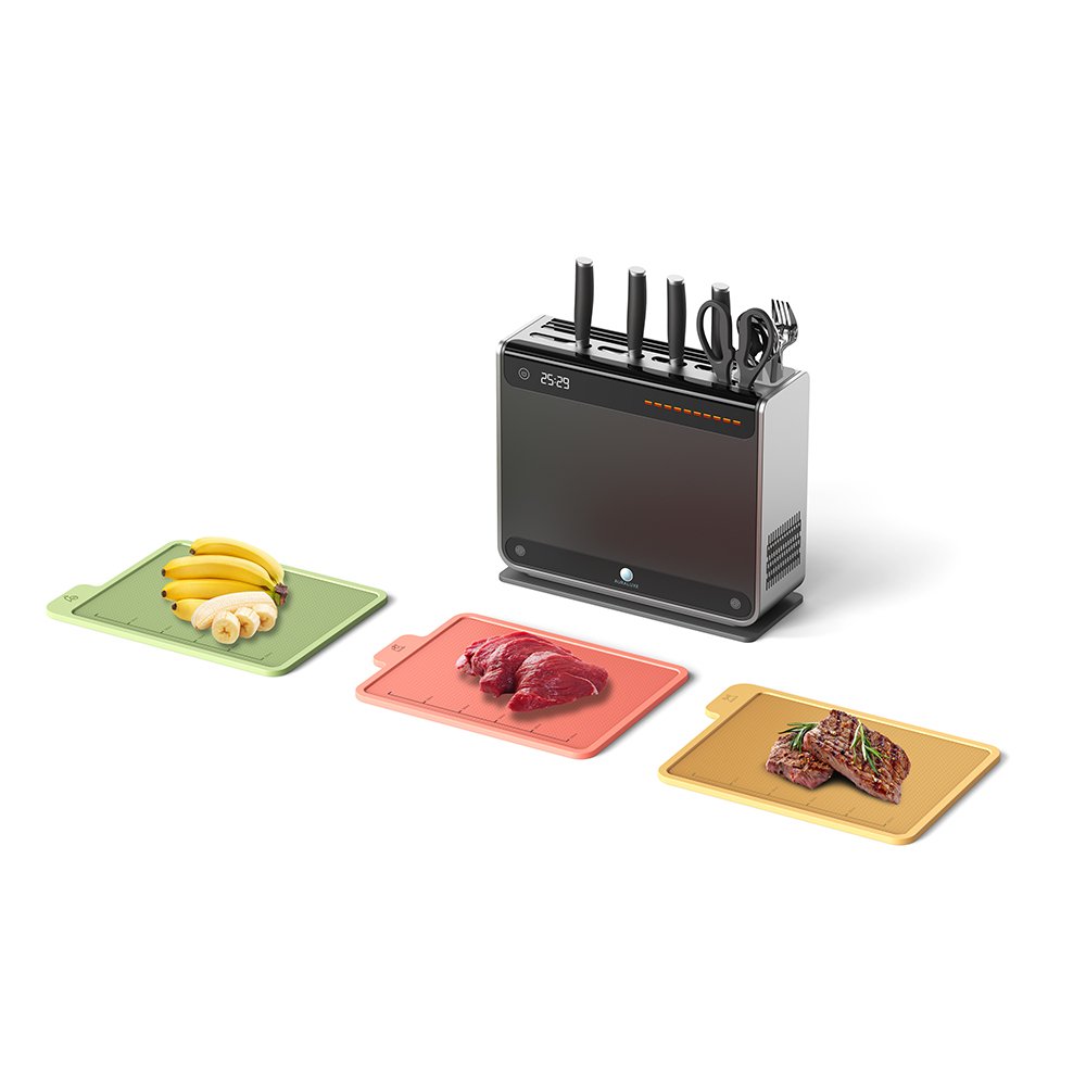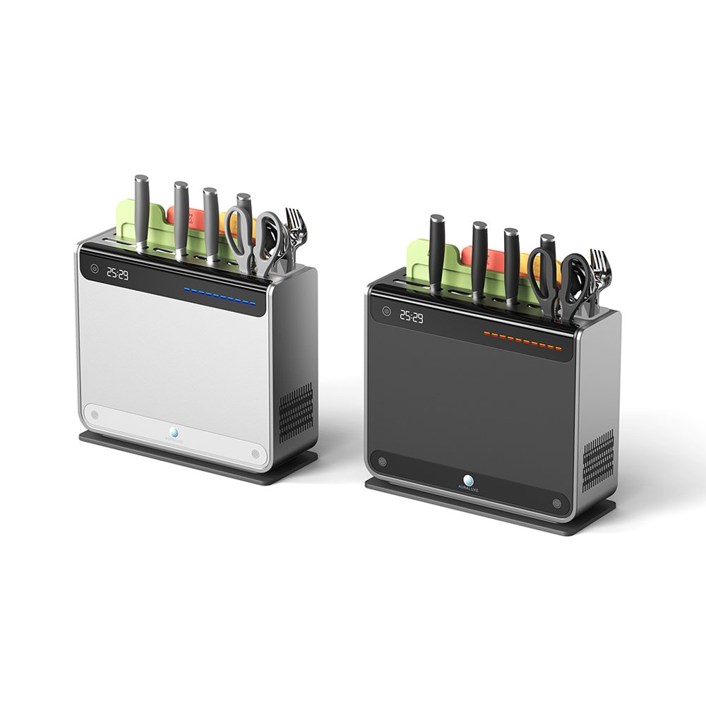Multi-Functional Storage: Integrated design stores and sterilizes multiple knives, scissors, and cutting boards simultaneously.